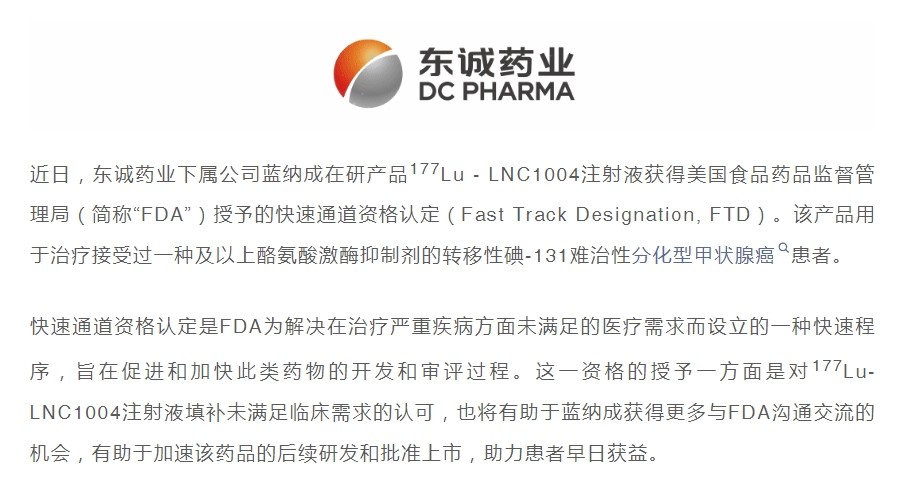 重磅 | 177Lu - LNC1004注射液獲得美國...